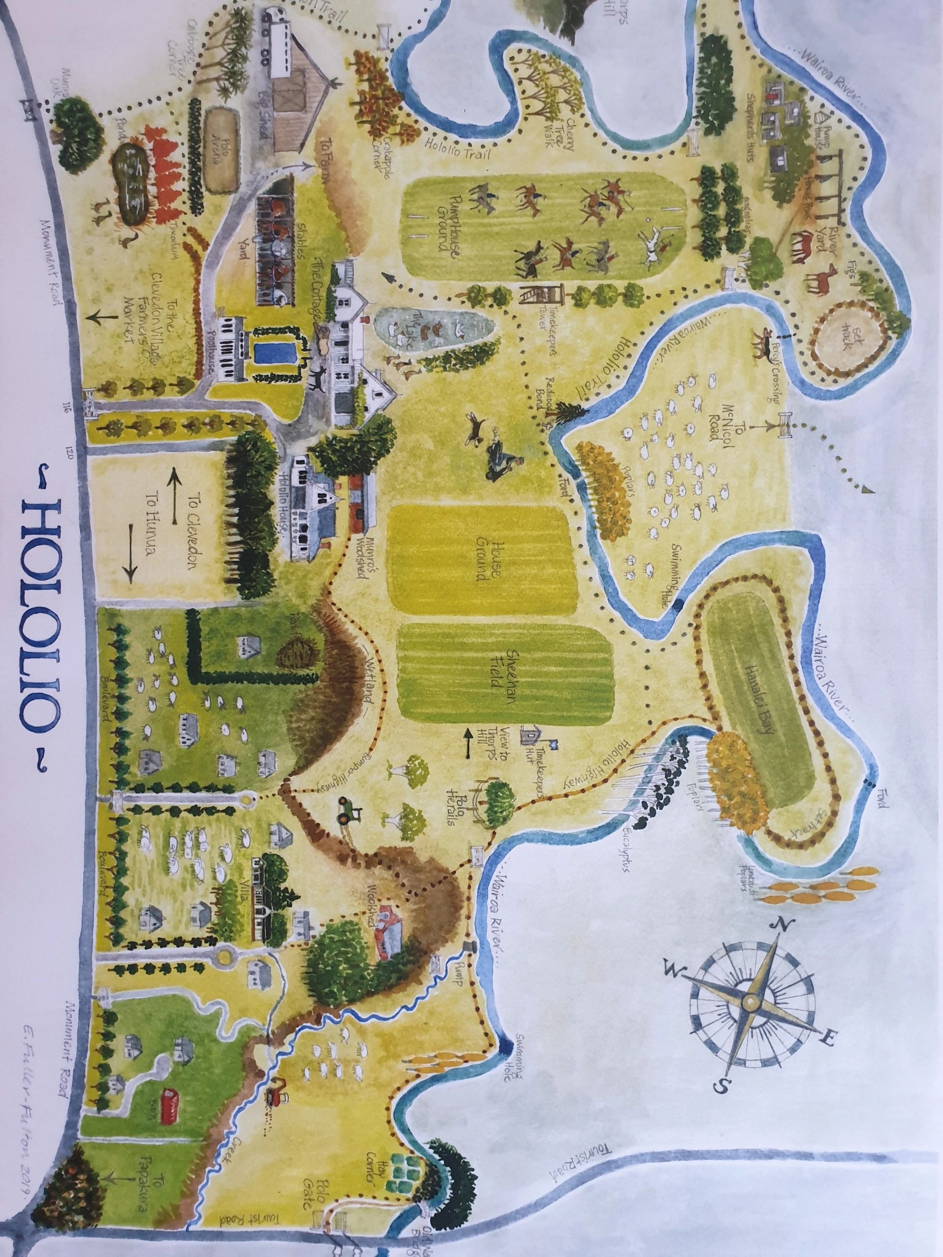 The River Terrace land is part of and overlooks Hololio Farm. 'Hololio' is Hawaiian for 'running horse'. Purchased by current owner Nick Jones in 1981 from the original settlers, the Munros, the property has recently expanded to incorporate the adjoining historic Dow property, and to reintegrate the Munro homestead, built in 1892.